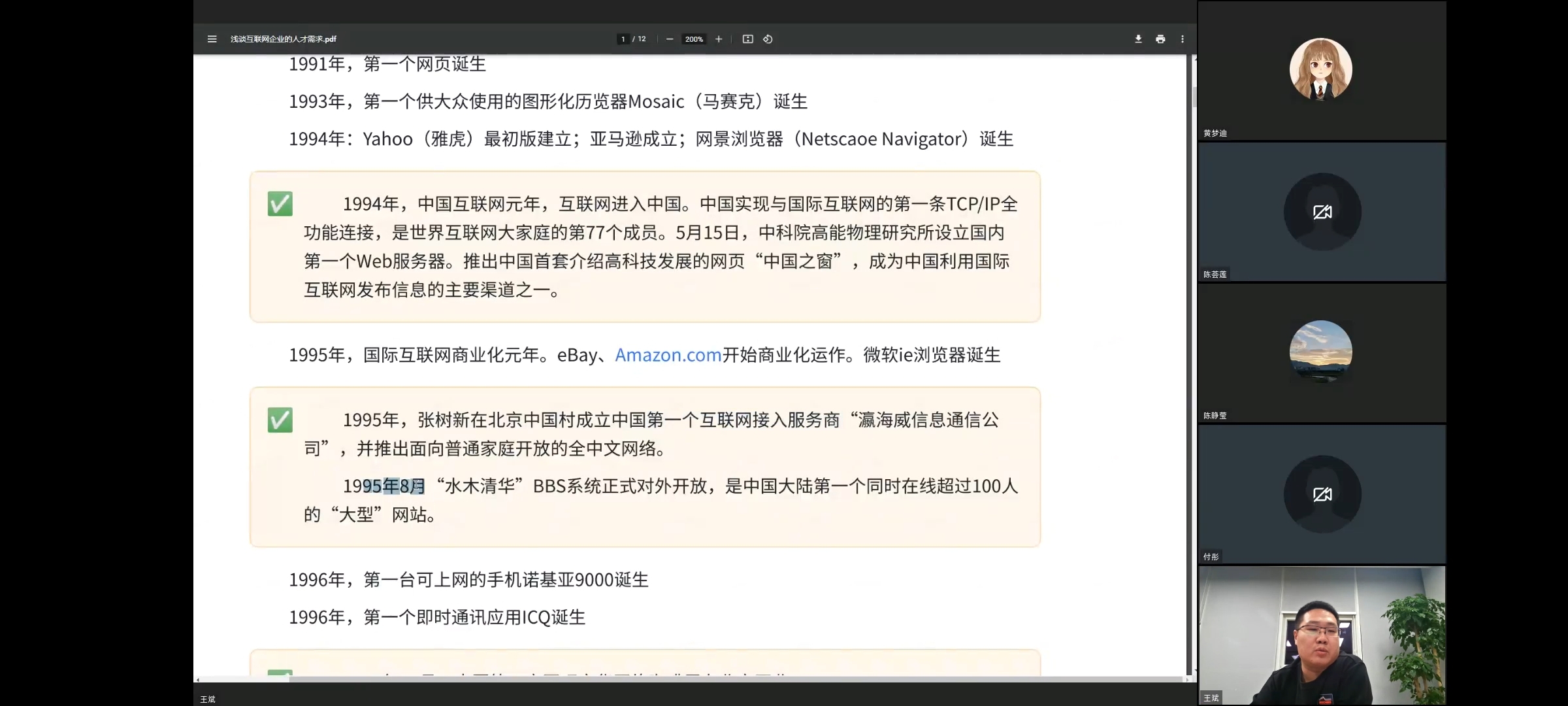 王斌老师从历史溯源追今,由全球互联网发展史开端,介绍了互联网百强企业,为员工们未来就业给出了建设性建议。在“人才现状与未来需求”板块层层递进,由社会人才招聘方向与应届毕业生自身优势,引出社会对人才的需求与教育政策、人口结构之间的关系,提出了老员工智力资源过剩的现状,罗列了毕业生应具备的条件和心理与身体素质,为在校老员工的选课学习及努力方向提供了建议。王斌老师在讲座中讲解了企业招聘流程,并系统地介绍了互联网企业的岗位、管理思路与发展、细分列表等,深入浅出,打开了在校员工的视野,也让将要求职和正在求职的同学们更加了解了求职的要求和过程。