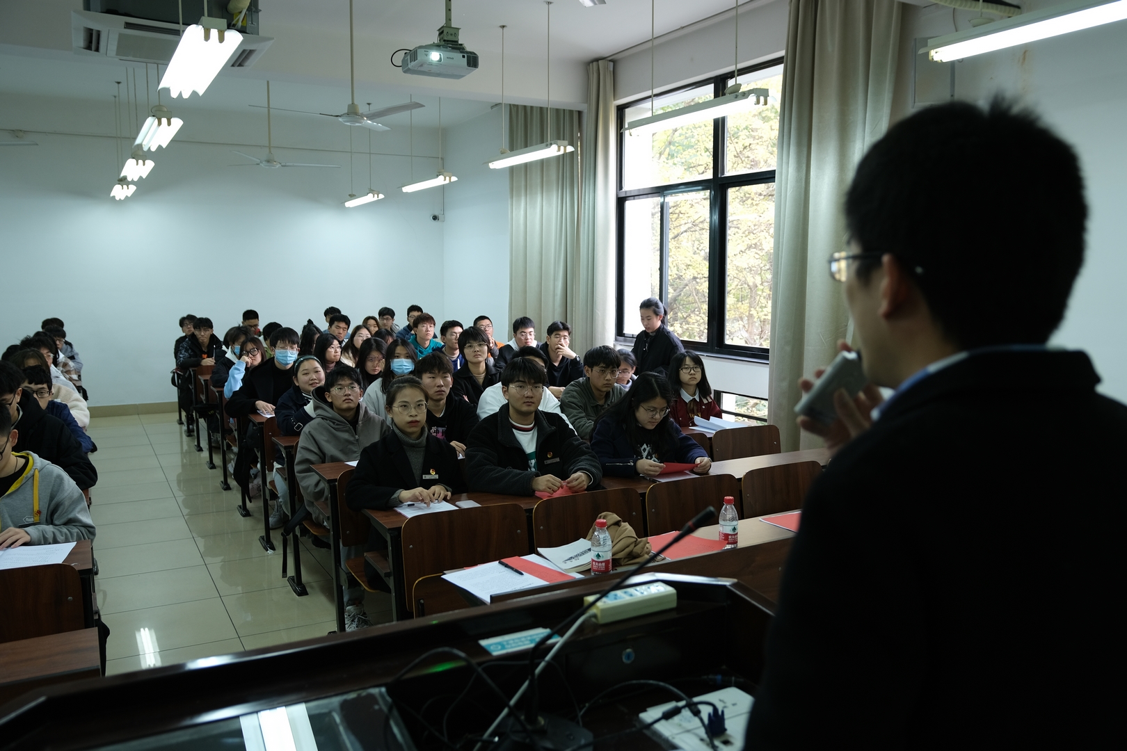 开班典礼后,夏文来老师作团校第一讲。他以“战疫情,中国为什么能赢”为题,从工业体系、民族情感、处事态度等三个方面分析了中国战疫取得成功的原因。他引导团学干部正确理解中国共青团的属性和定位,指出了团学组织的先进性和群众性,同时希望大家处理好时代变化、祖国发展和个人奋斗的关系。课程尾声,夏老师声情并茂地讲述了公司青年学子奔赴新疆、奉献青春的动人故事,同学们深受鼓舞,现场掌声雷动。