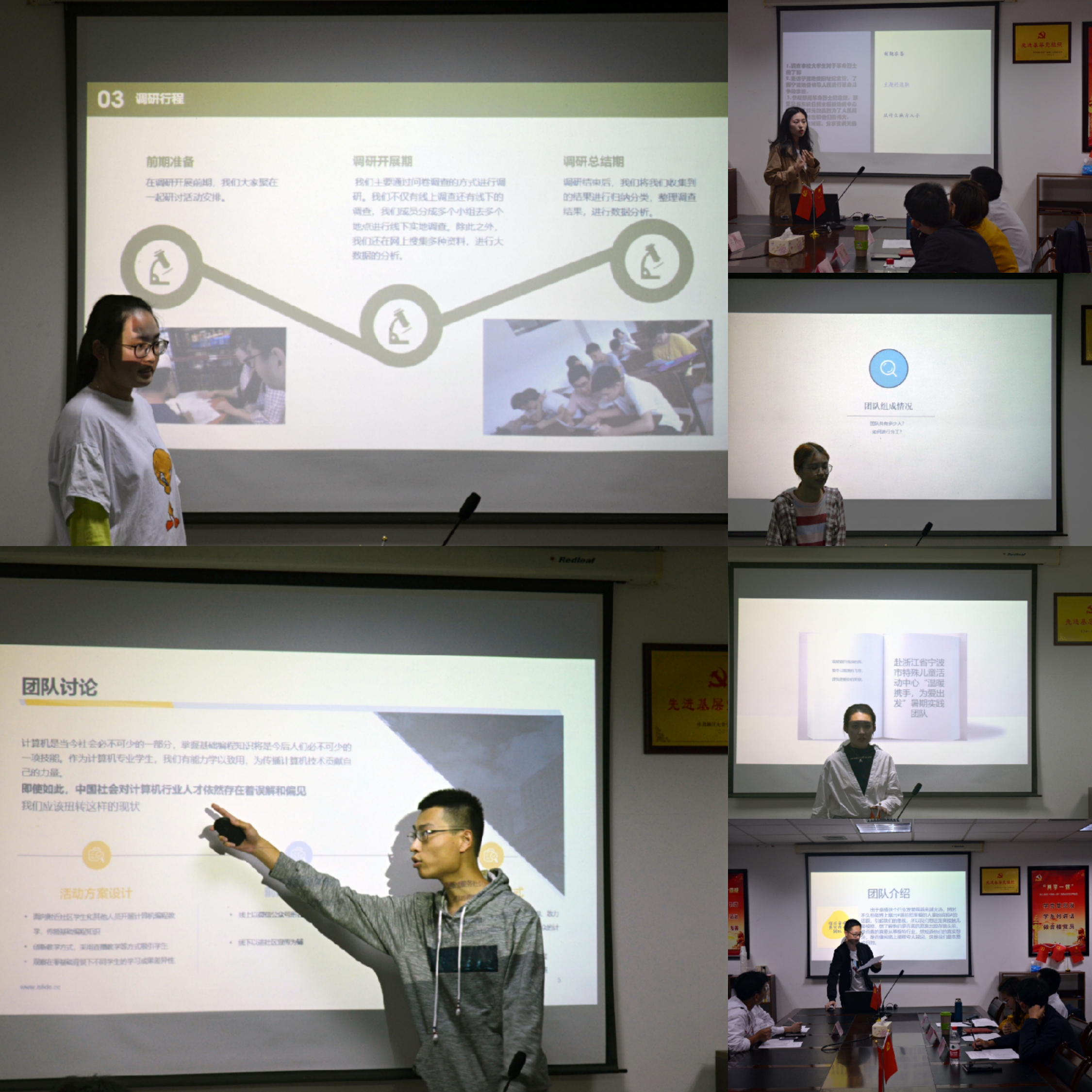 暑期社会实践团队依次进行团队展示,对此次社会实践活动进行总结,内容包括创意形成、准备工作、感想感言以及实践成果等。之后,评委老师分别从ppt展示情况、活动开展情况等方面给出看法,提出不足,给出建议。比赛结束后,马炜栋老师进行总结,他祝贺同学们圆满完成此次暑期社会实践活动,并希望同学们继续努力,将此次实践活动的收获融入到今后的学习生活中。最后,由员工会主席杨泽同学宣布了2019年暑期社会实践活动优秀团队名单。