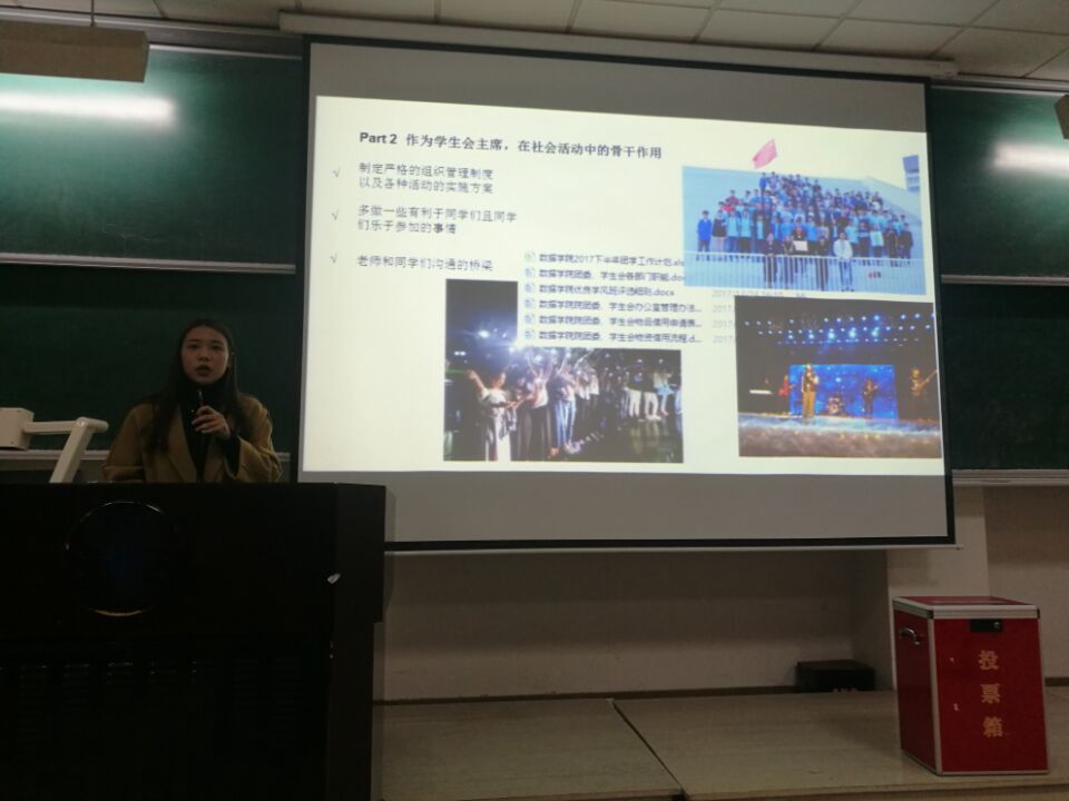 活动开始前主持人介绍了本次评选活动背景并宣布了评选规则。而后10名员工党员按照次序依次上台进行个人展示。在展示过程中每一位党员都紧紧围绕“如何做最美员工党员”这一主题,从政治思想、业务学习、班团建设、社会活动、优良学风建设和文明寝室建设六个方面如何发挥作用进行了阐述,有的党员同志还讲述了党组织培养历程和个人成长过程中的感悟和体会,诠释了作为一名共产党员如何履行党员权利和义务,如何做普通同学的模范和榜样。在各位党员展示的PPT中,他们不计其数的奖状也从一个方面证明了他们的优秀。