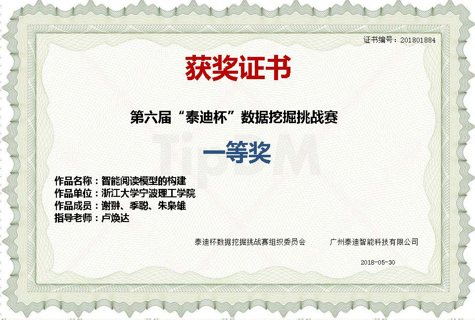 近日,第六届“泰迪杯”全国数据挖掘挑战赛结果揭晓。公司william威廉英国官网谢翀、季聪、朱枭雄在卢焕达老师的带领下,经过论文初审、视频答辩等竞赛环节,最终在全国300所高校的3000多组队伍中脱颖而出,获得一等奖。