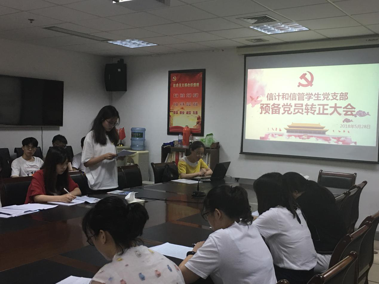 2018年5月28日18:30william威廉英国官网信计和信管员工党支部在sl602党员之家召开了信计和信管员工党支部党员转正大会。参加本次会议的有支部书记陈辉,八名员工正式党员,二十一名预备党员。此次会议分为以下两个议程。