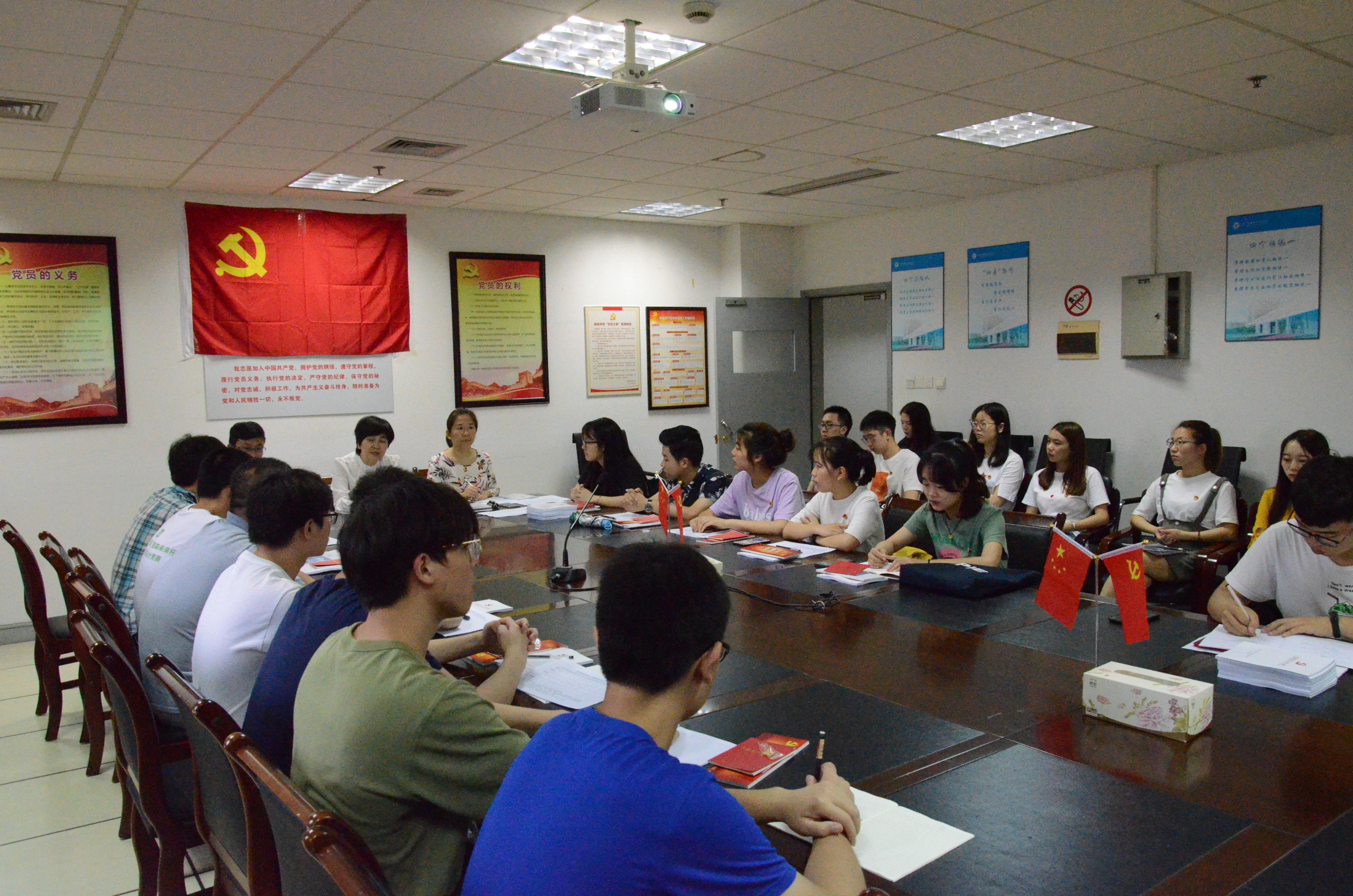 大会开始,由王常青老师介绍大会到场老师和参会人员。随后,全体起立,奏唱《国歌》。接下来举行了入党宣誓仪式,由邬旭东老师领誓,全体新发展党员面向党旗宣誓,到会的其他党员重温入党誓词。新发展党员代表信计161班张智涵发言,她表示,在今后的学习、工作和生活中,会不断加强党的知识的学习,努力提高业务水平,提高为人民服务的本领,认真履行党员义务,成为一名合格的共产党员。