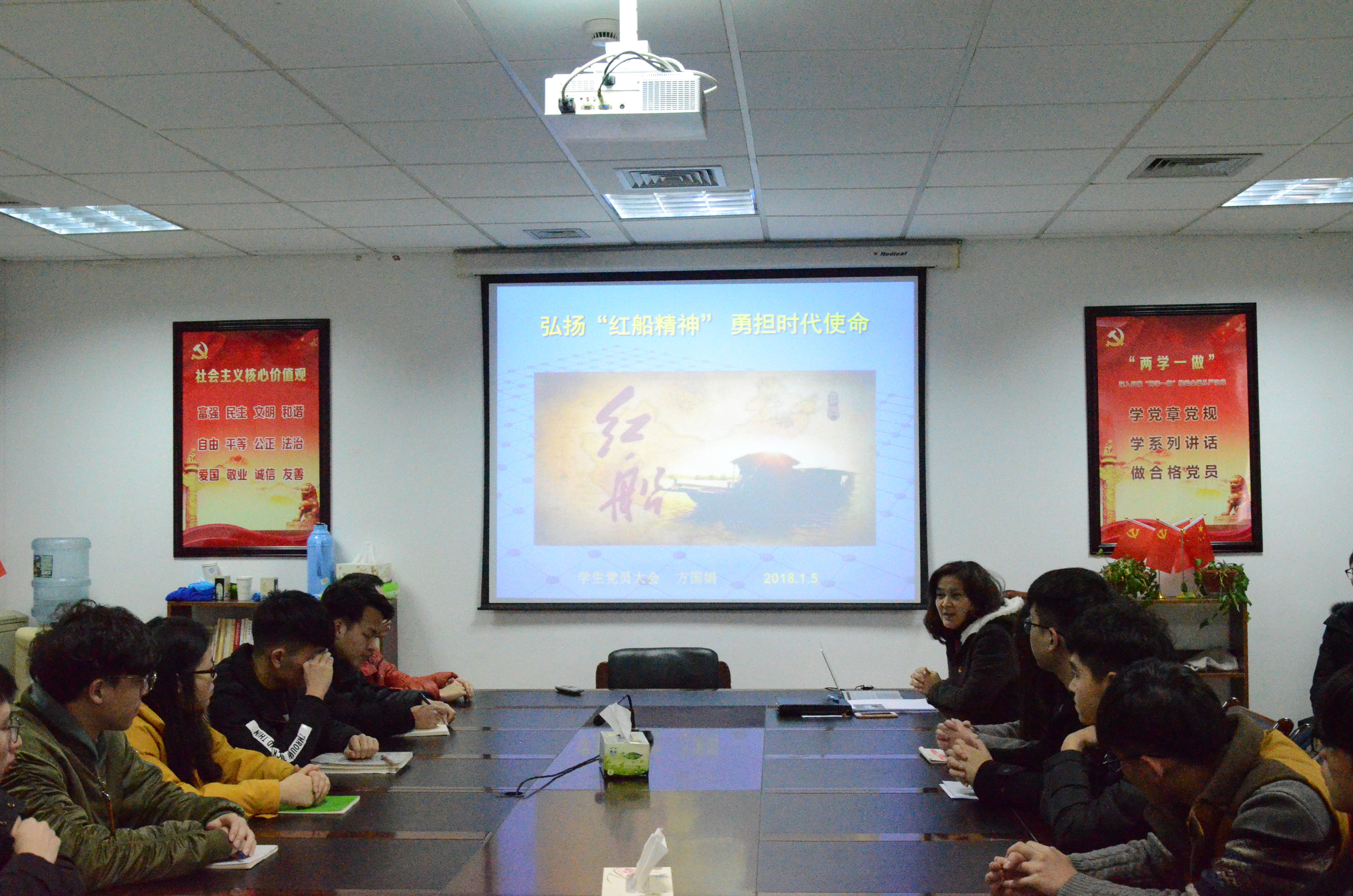 随后,方国娟老师讲授了题为“弘扬红船精神,勇担时代使命”的党课,讲述了中国共产党从创建以来走过的道路,阐述了“红船”精神,希望各位党员不忘初心,永远跟党走,牢记“红船”精神,坚定理想信念,勇担时代使命。