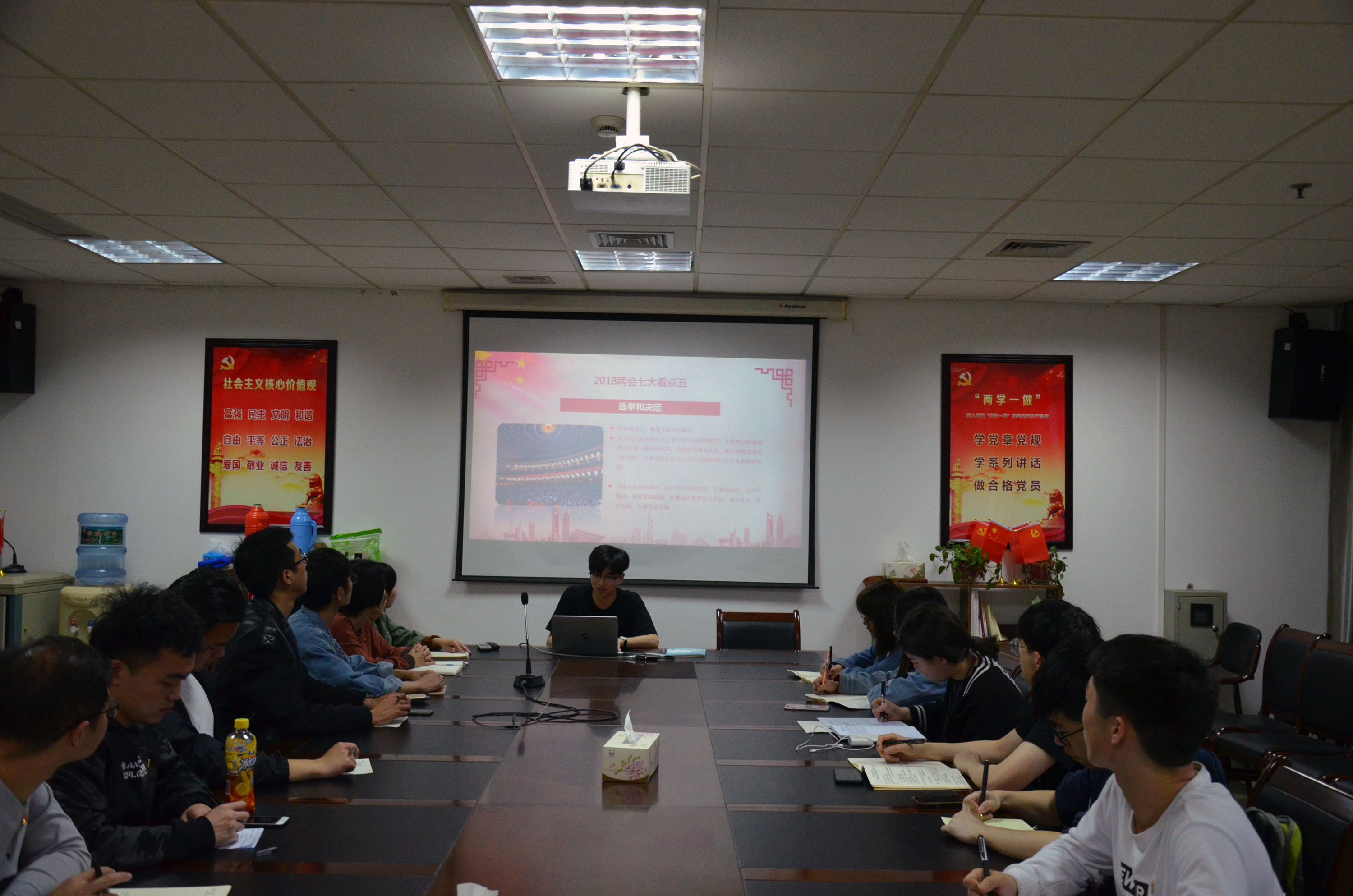 首先,由党支部理论学习小组组长沈骁勇同志带领大家学习了《奋进新时代,开启新征程-全国两会学习概要》,他着重讲了2018年两会基本概述、2018年两会七大看点和2018年政府工作报告等内容。在讲到过去五年国家取得的成就时,大家纷纷表示从一系列数字的变化上可以明显看出我们的国家日益强大,在讲到2018年经济社会发展总体要求和政策取向时,在座的员工党员尤其是临近毕业的员工党员也在感慨在就业创业过程中要牢牢把握国家的最新政策,才能有更大的发展空间。