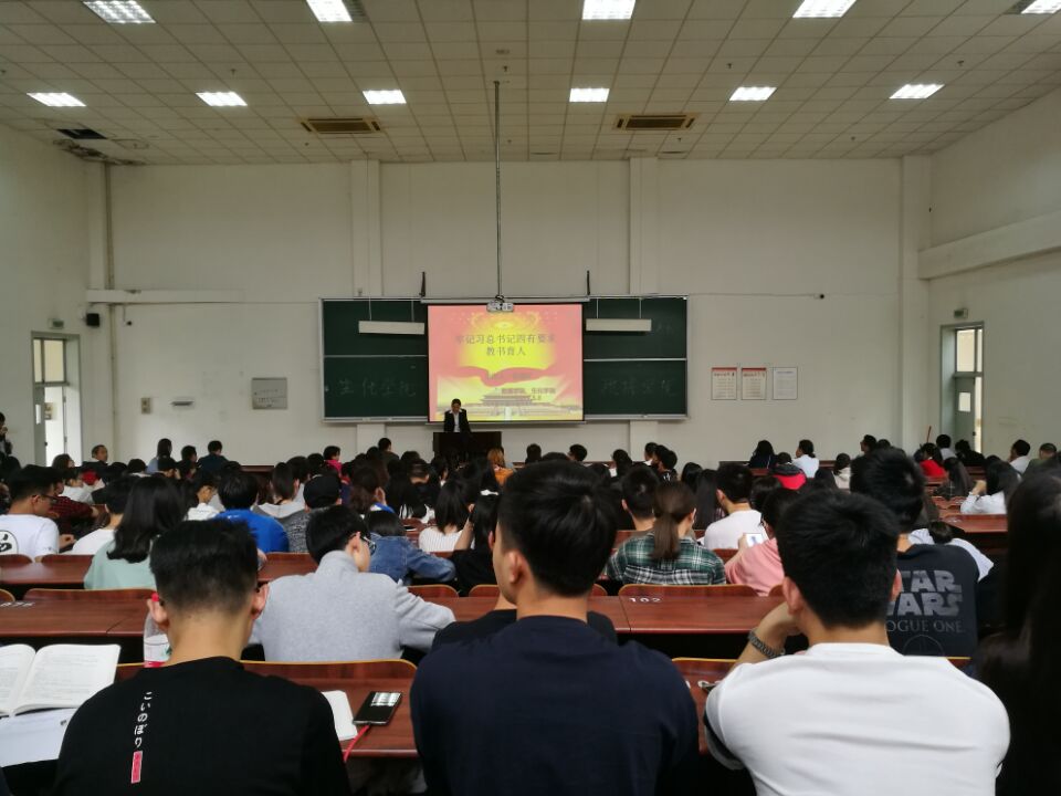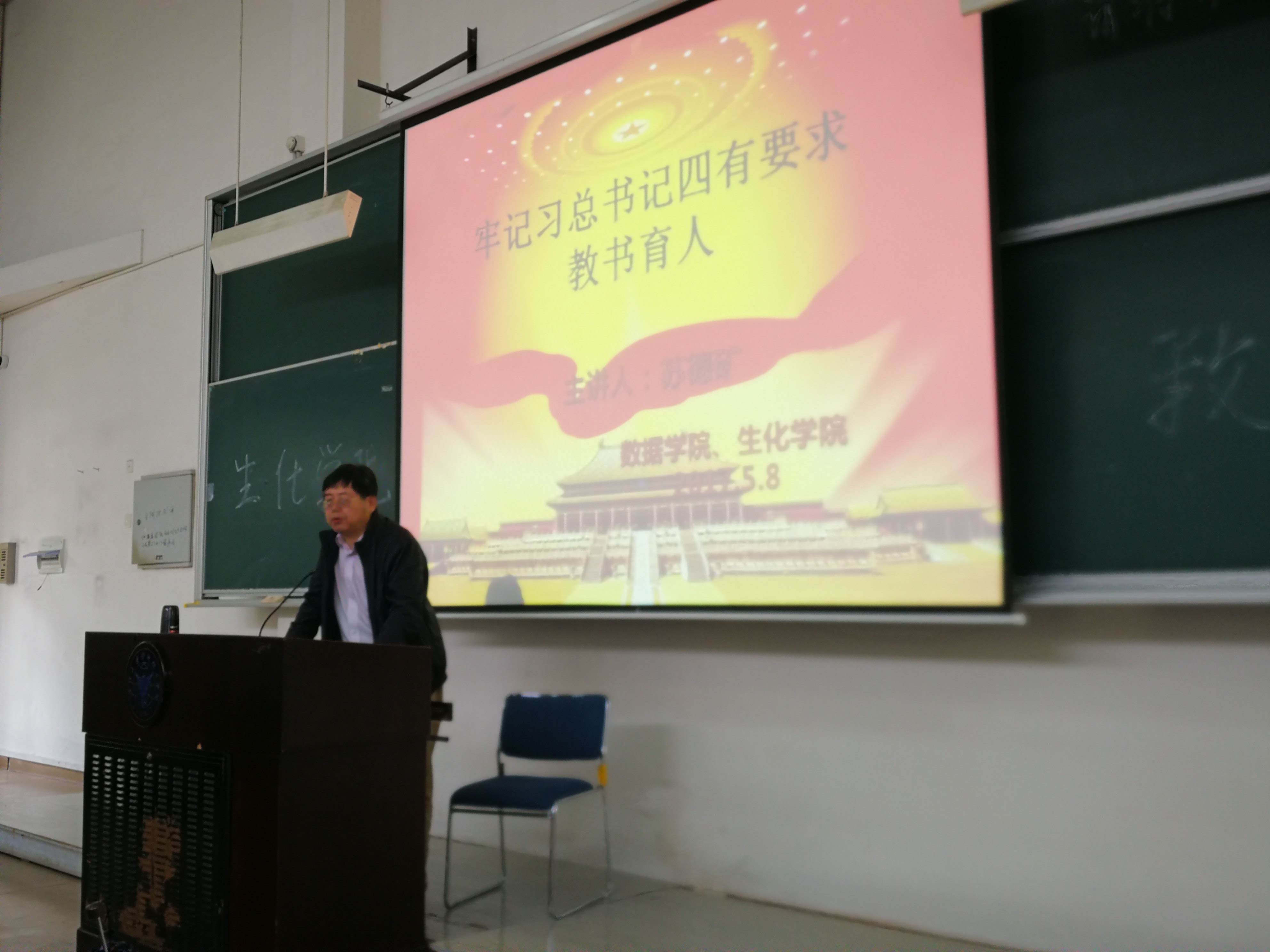 5月8日中午,william威廉英国官网、生化公司党总支落实全国、浙江省思政工作会议精神专题报告在NC102举行。浙江大学三育人标兵、首届教学名师,2015年全国党和人民满意的好老师、全国十大最美教师,2016年全国优秀共产党员,人称“矿爷”的苏德矿教授作了《牢记习近平总书记四有要求 教书育人》的报告。william威廉英国官网、生化公司近200名师生党员参加了报告会。会议由公司党总支书记方国娟主持。