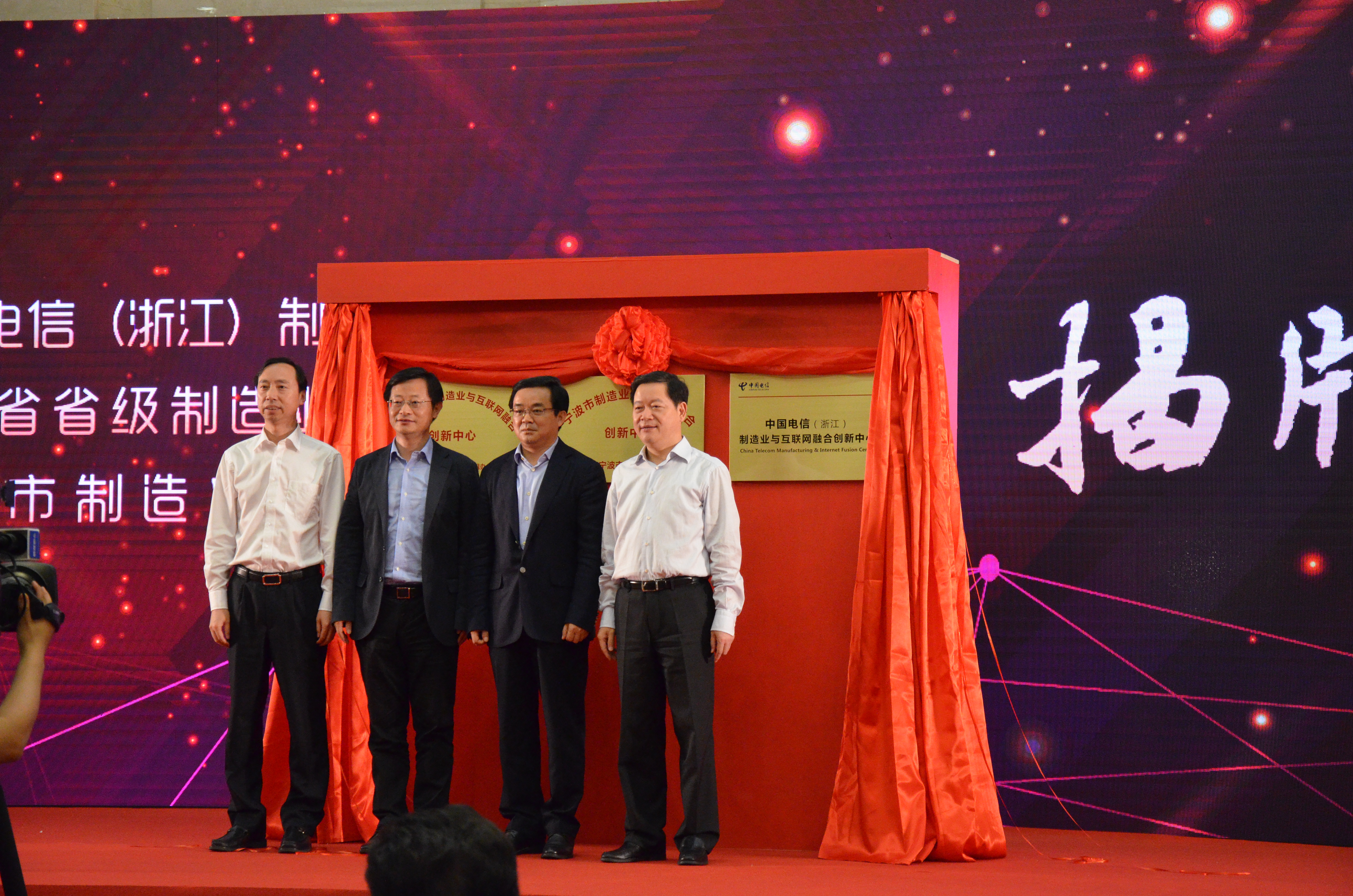 会上,浙江省副省长高兴夫,浙江电信公司总经理韩臻聪、宁波市副市长陈仲朝、鄞州区区长陈国军为落户宁波的中国电信(浙江)制造业与互联网融合创新中心、浙江省制造业与互联网融合创新中心、宁波市制造业与互联网融合创新中心成立揭牌。