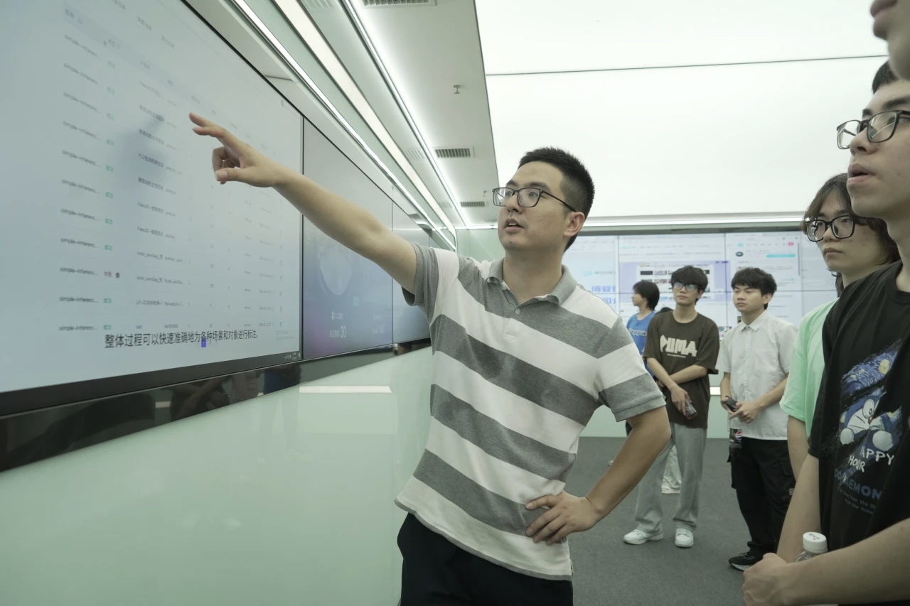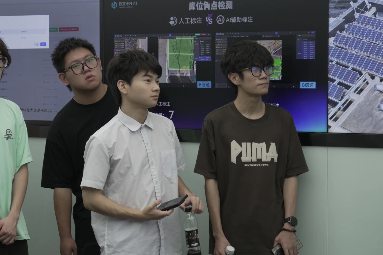 活动伊始,实践团首先参观了博登智能公司展厅,跟随着公司干逢雨总监的介绍,大家对AI领域的技术成果和应用案例有了初步认识,并对公司业务板块加深了印象。随后,在数据标注工序介绍环节,大家对于数据标注的流程和重要性,及其作为AI应用的基础环节有了清晰认知。