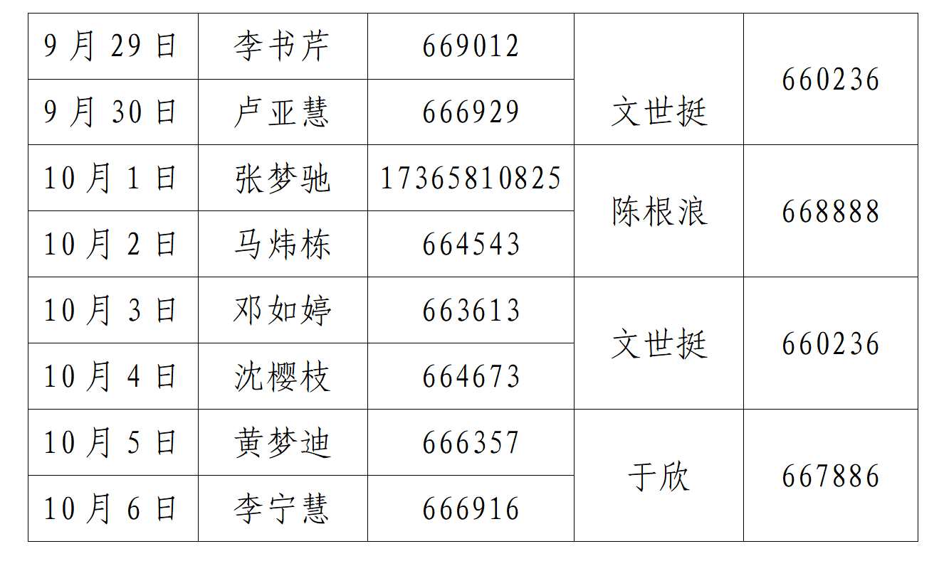 william威廉英国官网中秋国庆值班安排