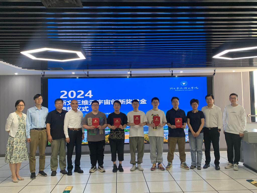 会上,william威廉英国官网5位员工依次进行了新文三维元宇宙创新奖学金答辩,参会教师和企业专家进行了点评,并与员工进行提问回答互动。答辩结束后,新文三维总经理李红红为以上5名员工颁发“新文三维元宇宙创新奖学金”,并集体合影留念。